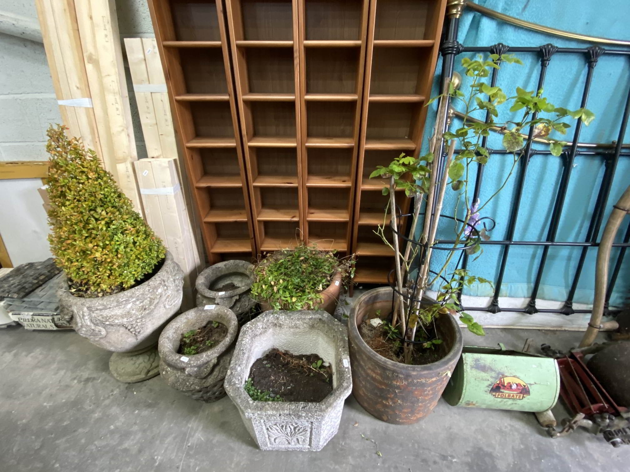 4 stone effect planters and 2 terracotta planters - in various sizes