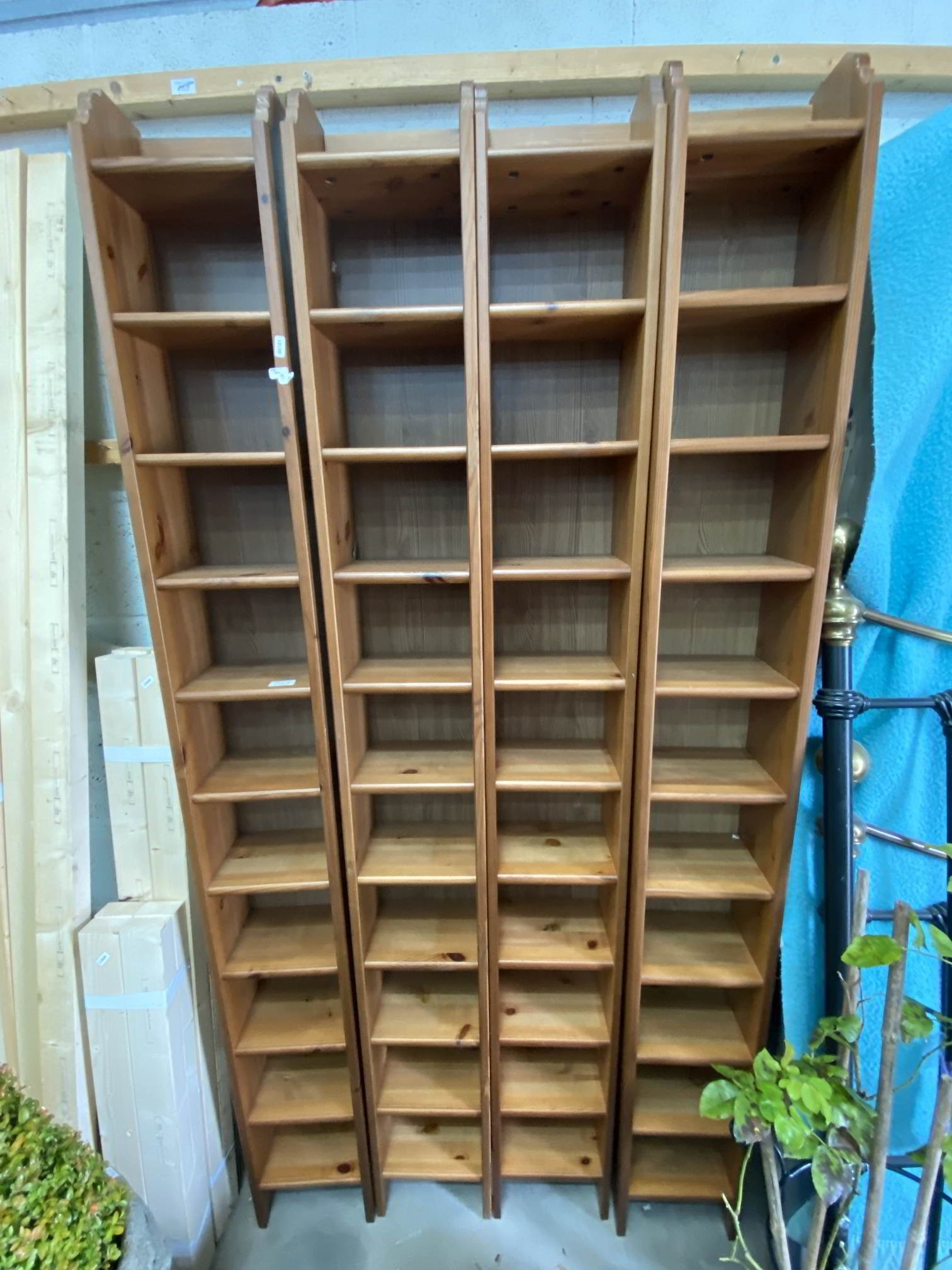 4 pine CD shelving units 198H 24W 18D