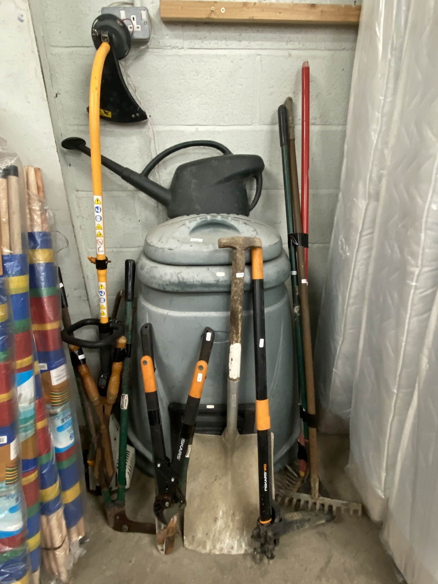 Ryobi RLT26CDS petrol strimmer, assorted gardening tools, composter etc