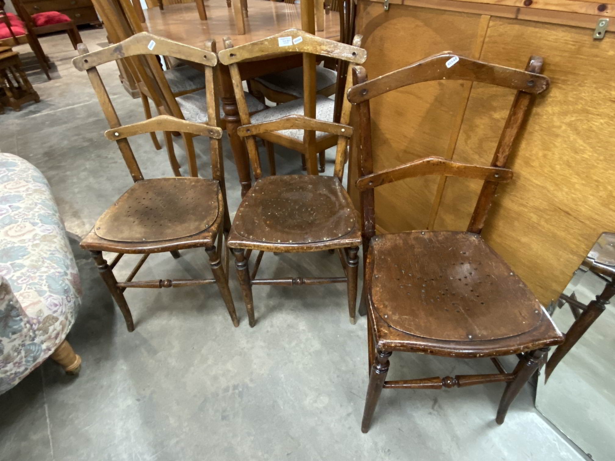 3 Luterma Estonia chairs punched and stamped 178e 86H 38W 39...