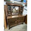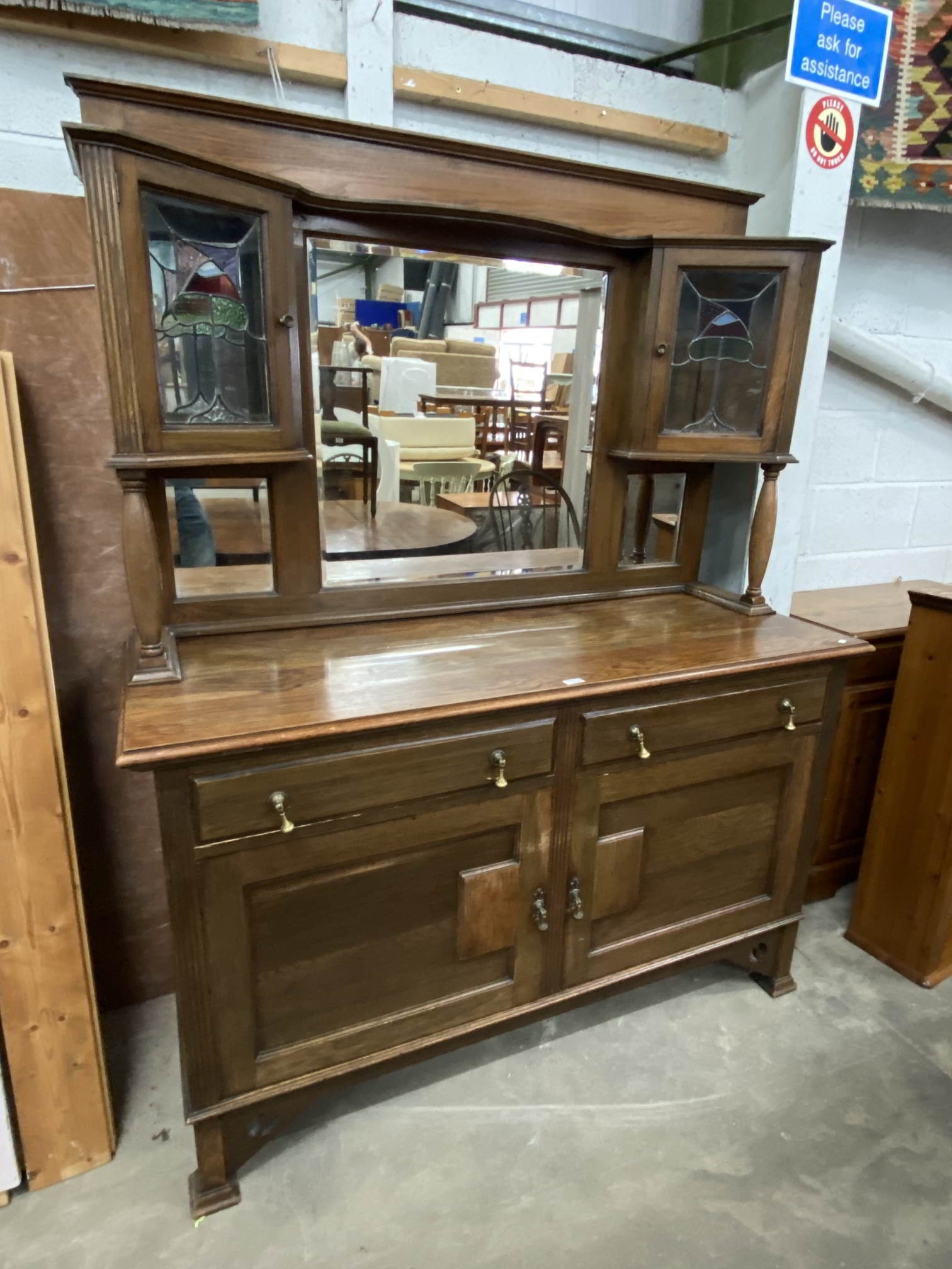 Art Nouveau oak sideboard with stained glass 195H 153W 58D