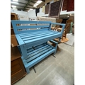 2 blue painted wooden garden benches 74H 148W 68D ('L' shape...